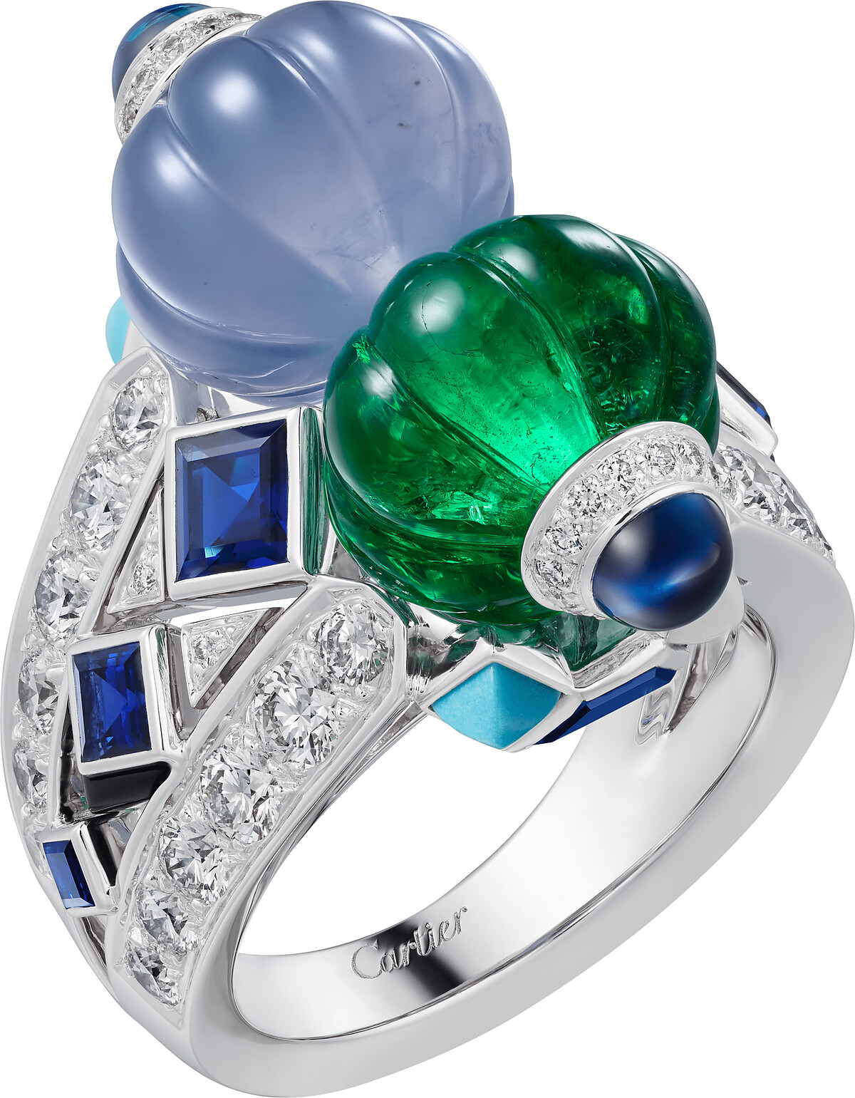 高級珠寶系列戒指 白K金、祖母綠、藍玉髓、縞瑪瑙、綠松石、鑽石