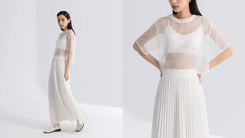 終於等到一週最重要的約會,想來點與日常穿搭風格不同的女人味造型,以全白色作為整體色系,穿上白色背釦式BRA TOP,可調式背鉤讓穿著更方便,可調式肩帶自由調節舒適長度,上衣套著透膚款薄紗罩衫,不過於張揚展現出肌膚,卻又隱約展露出纖細腰線與手臂,讓人看了好心動!搭配氣質出眾的白摺長裙,就能中和性感與優雅的約會造型。