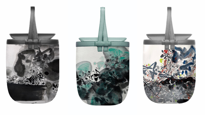 上下運用過許多不同的材質來詮釋品牌的第一個包款,而現今最特別的是與國畫大師朱德群所合作的樣式。先用皮革製作出包包,再用真絲一針一針刻劃出朱德群的水墨畫圖樣,打造收藏級的藝術包款。此系列三個包為一組,全球限量10組,台灣目前留有2組,想親眼看看上下的匠心巨作,一定要到店逛逛!