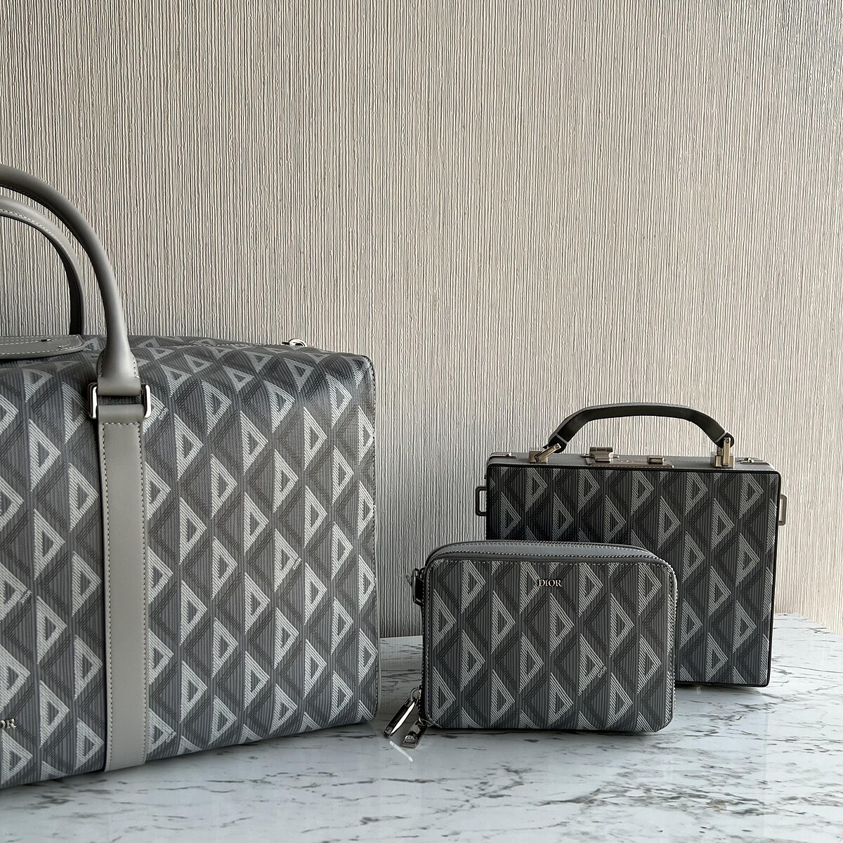 將深淺不同的三角形,以幾何排列組合成CD Diamond老花圖騰,義大利工坊內經驗老道的工匠們,細心繪製CD鑽石切割圖騰,壓印在全球有機織品標準認證的有機棉帆布,運用細膩的絲網印刷技術,營造出立體浮雕效果,包括經典迷濛灰、深邃黑和咖啡棕共3色。