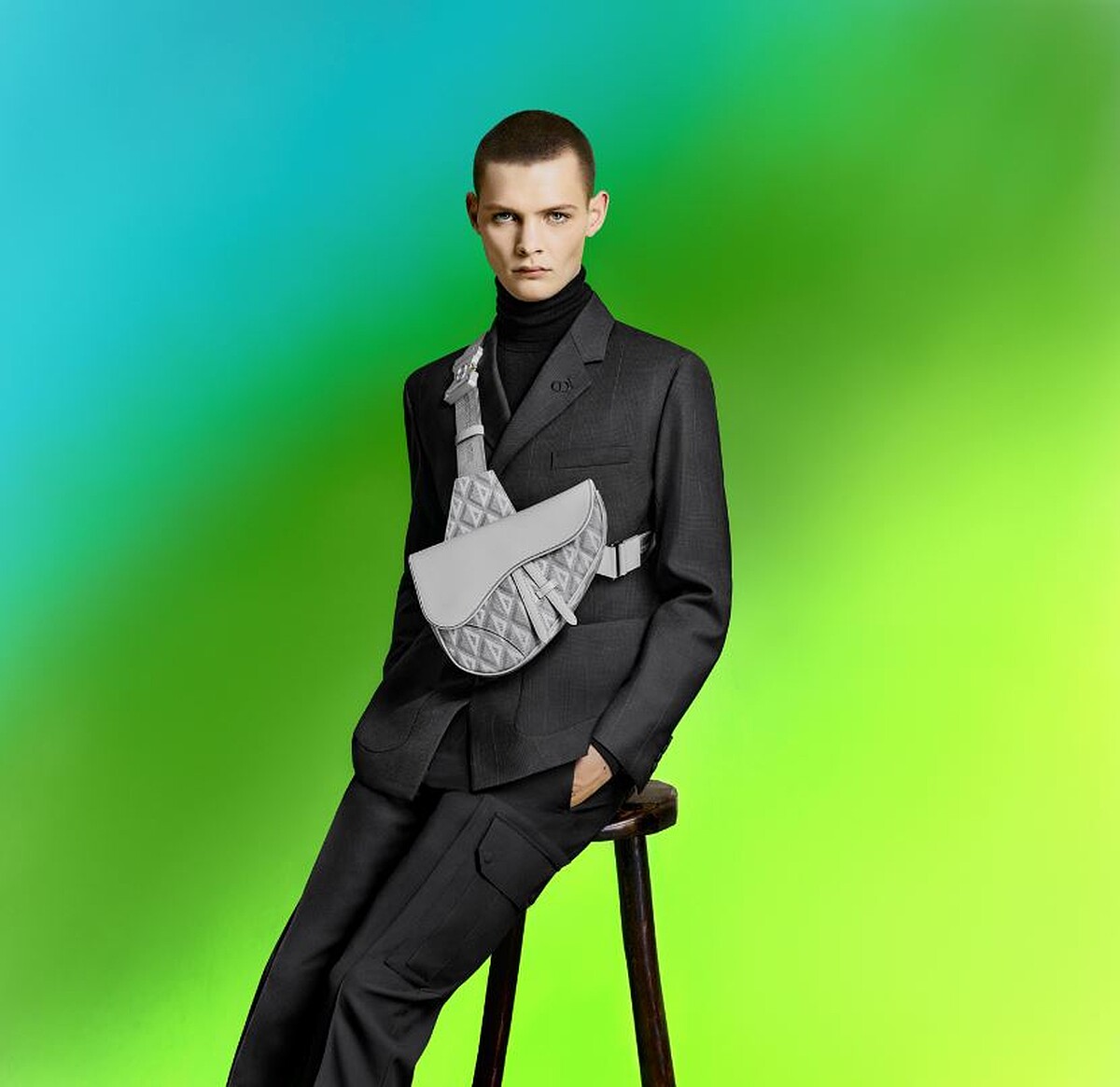 風靡時尚潮人的Saddle馬鞍包換上全新CD Diamond老花圖騰,搭配標誌性的金屬釦環背帶,看起來更加前衛。