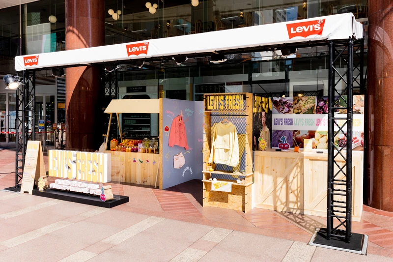 為了歡慶Levi’s Fresh系列在台開賣,Levi’s選定台北SOGO忠孝店1樓中大門前廣場,延續新鮮蔬果的設計理念,打造農夫市集主題的Levi’s Fresh系列快閃店。