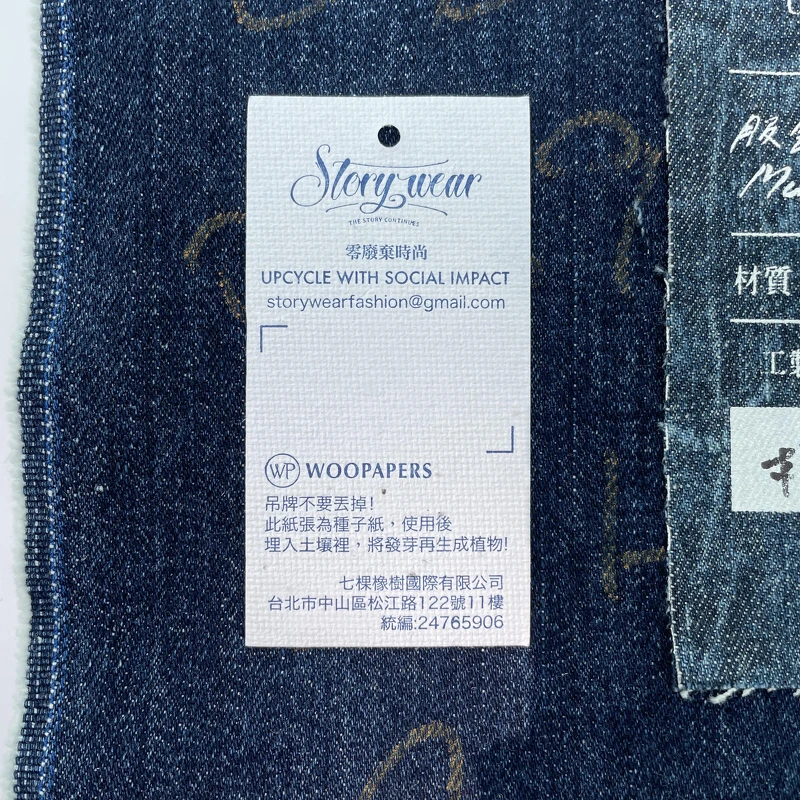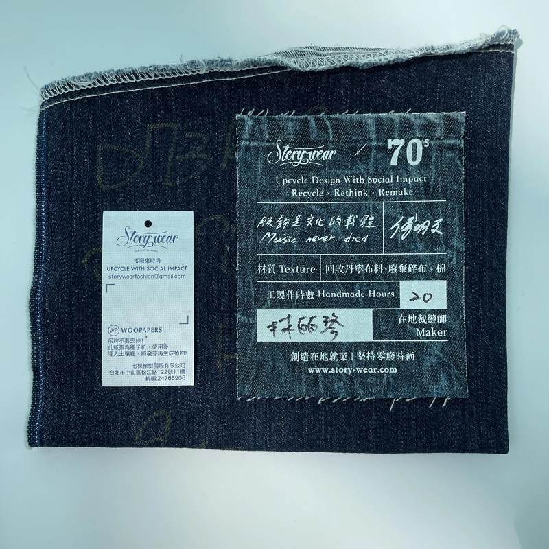 利用回收舊衣製衣或許不稀奇,不過結合上ESG當中的「S社會責任」就更值得關注!Story Wear選用回收布料與牛仔褲,並找來在地的二度就業婦女、腦性麻痺媽媽們來協助生產製衣,完成品還會請製作者簽上名,除了環保還提供了弱勢族群就業機會,更具社會意義。