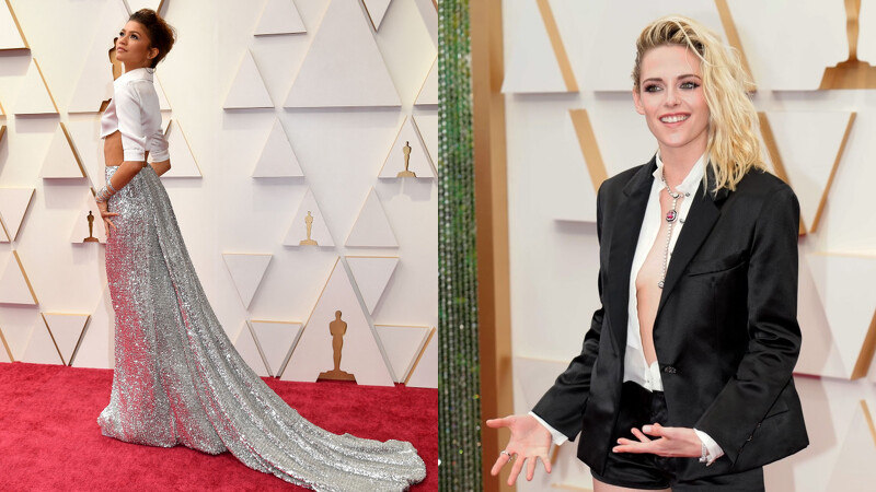 西裝不再只限於男演員、禮服也不只有一件式的選擇!首次入圍奧斯卡的Kristen Stewart以俐落的西裝套裝襯出獨有的史都華叛逆;被封為最時尚的女人千黛雅以炫腹之姿演繹兩件式禮服。