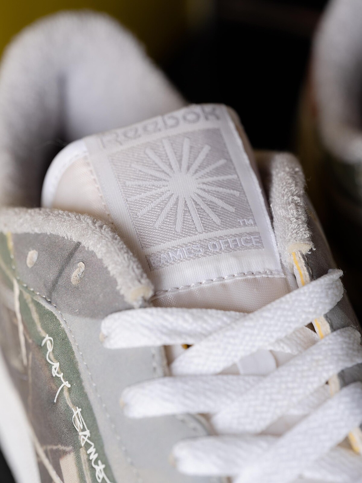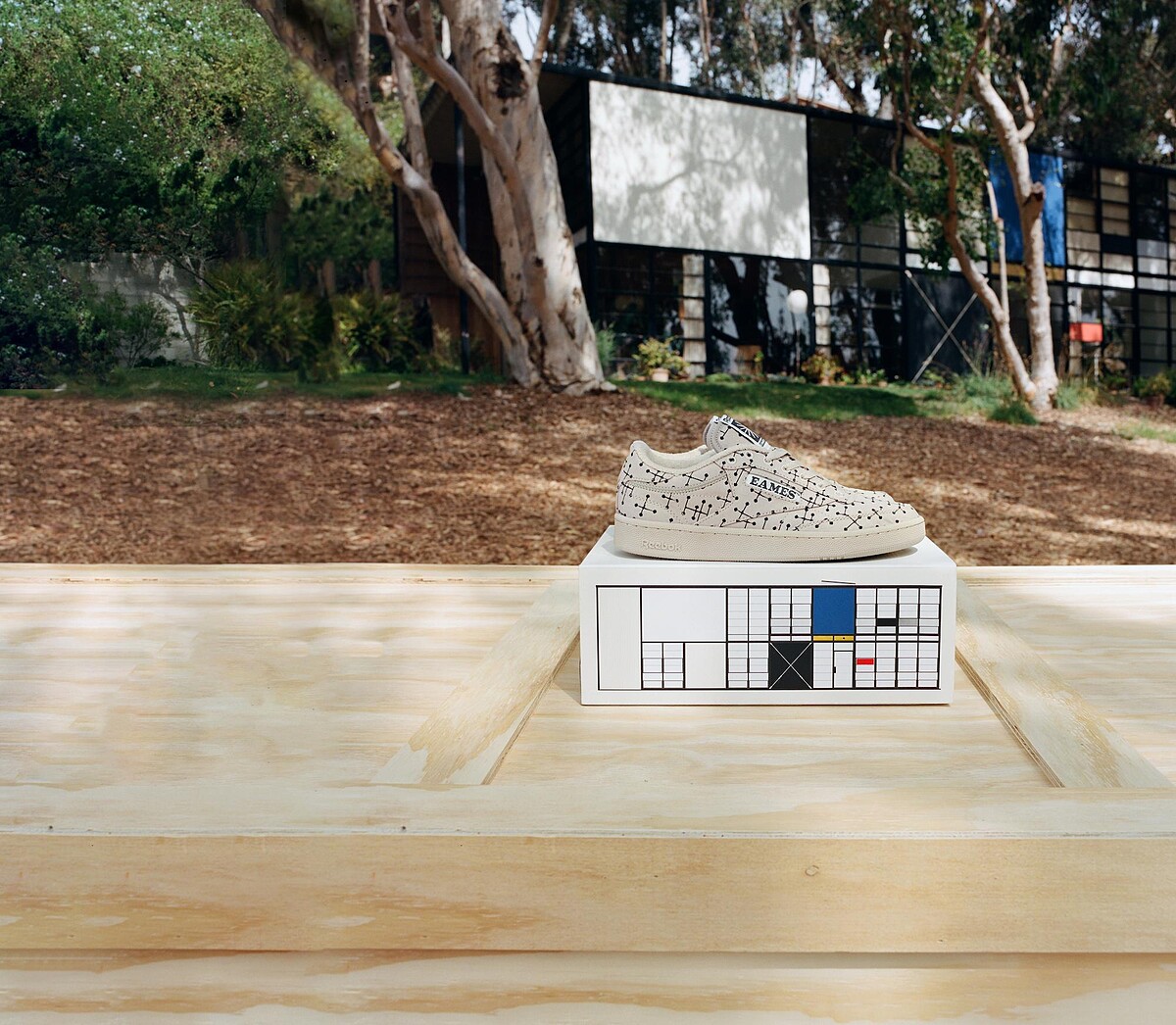 本次與Reebok的聯名,則是取經太太Ray Eames的繪畫創作《Composition》以及她最知名的《Dot Pattern》印花作為Club C的新衣設計。將Reebok與Eames Office的放射星星logo結合放置於鞋舌,細節則是放在球鞋的內部,還原Club C足弓繃帶設計,貼合腳底的舒適曲線呼應Eames Office對於使用體驗的要求與執著。