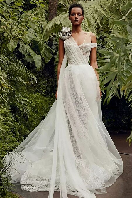 全球的粉絲等待許久,玄彬、孫藝珍的世紀大婚終於來臨,除了婚禮前釋出的婚紗照,在結婚典禮上,受邀賓客紛紛記錄下屬於兩人幸福的時刻,孫藝珍大婚當日的婚紗正式曝光,孫藝珍挽著父親的手,緩緩走到愛侶玄彬身旁,她所欽點的婚紗品牌,是1991年於以色列誕生的Mira Zwillinger,由一對母女設計師聯手設計,Mira Zwillinger擅長將仙氣與性感結合,卻不過於暴露,每一件婚紗還多了一抹清新氣息,也難怪孫仙會選擇Mira Zwillinger作為大婚當日的重頭戲。