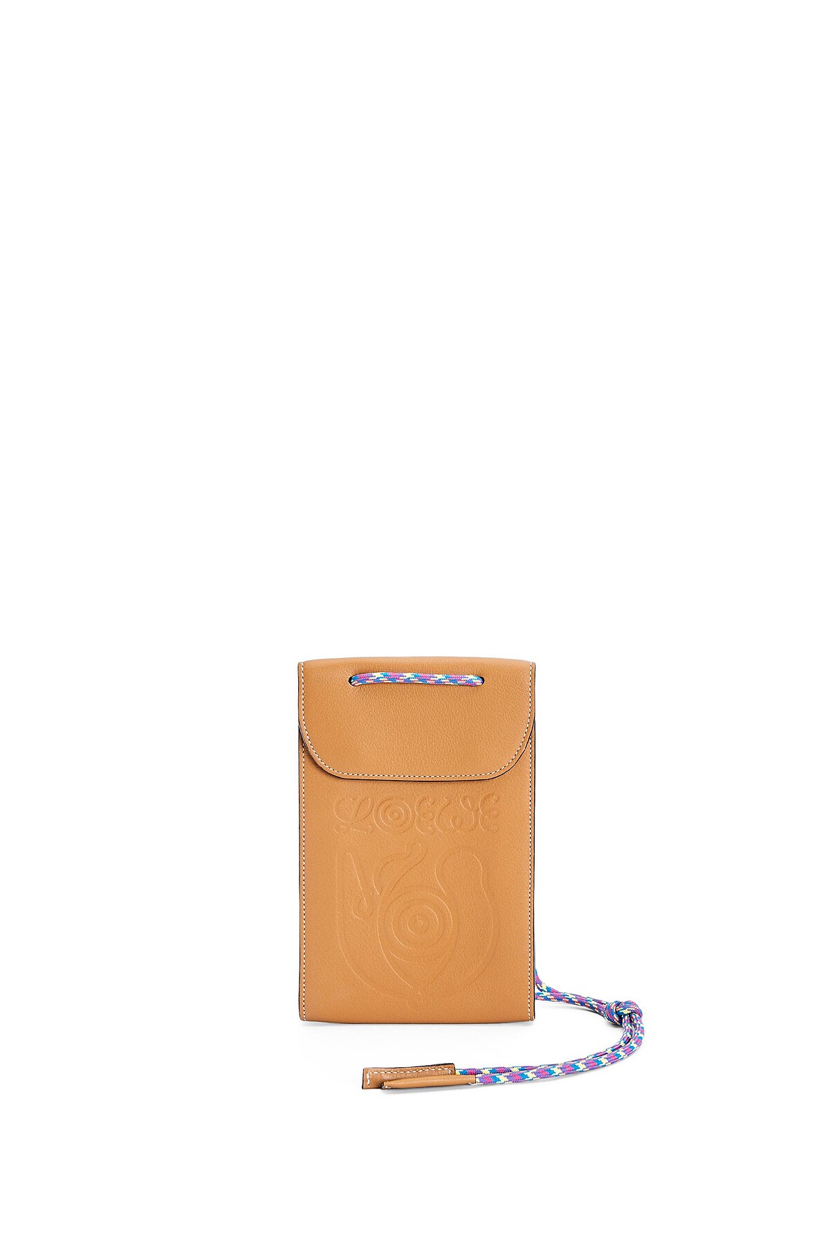 Eye/Loewe/Nature獨有的塗鴉式logo,將O字改造成眼睛模樣,反應出此支線的童趣個性。壓印至極簡的皮革小包,搭配上粉彩色調尼龍掛繩,休閒之餘又帶有細節品味。
