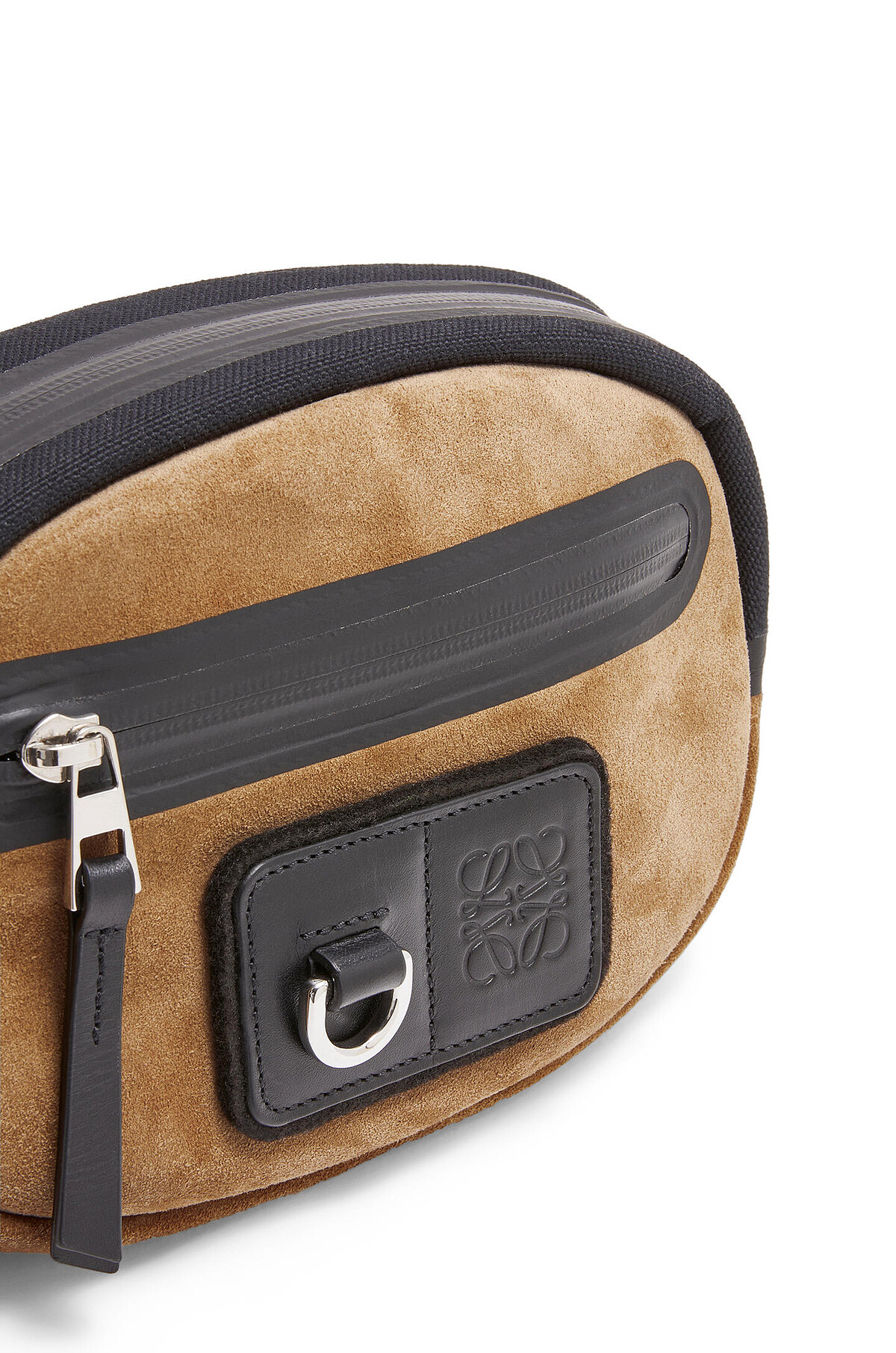過往較少看到純橢圓線條輪廓的腰包設計,此款腰包的收納空間包含一主要拉鏈層以及前方的小收納袋。拉鍊處特選用熱封拉鍊,和帆布拼接部分具一定的防水功能。