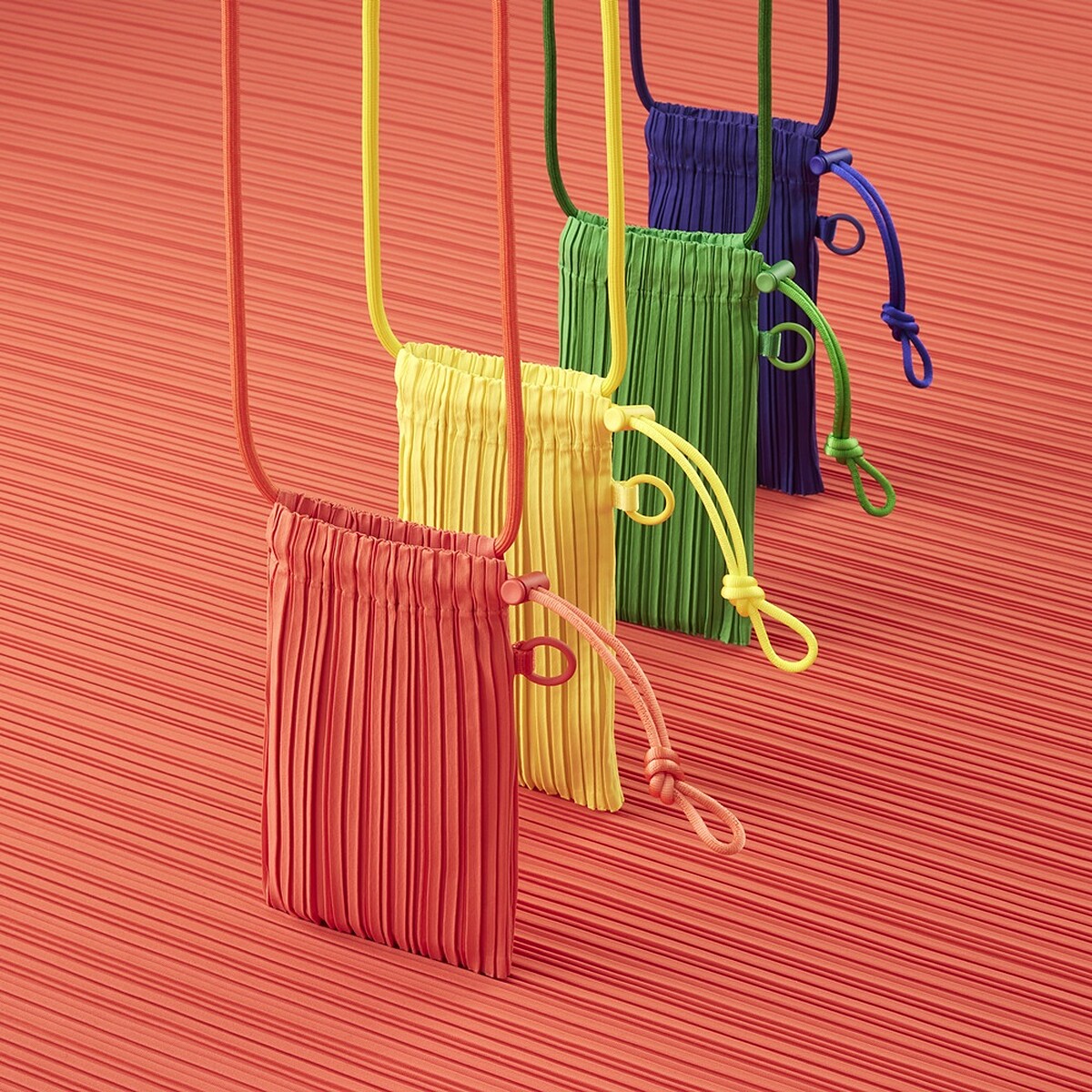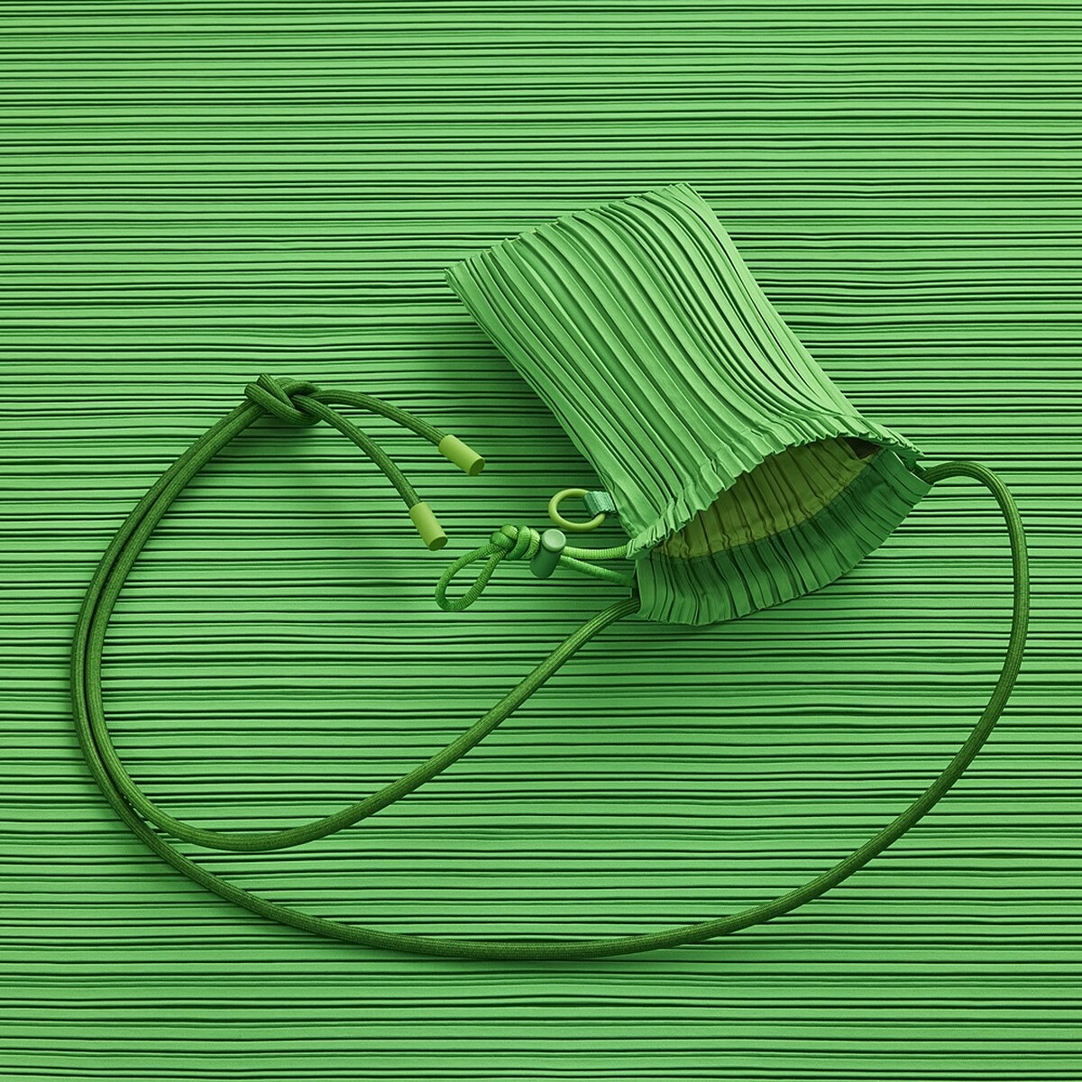 2022年春夏,Pleats Please Issey Miyake搭上從2017年興起的小包風潮,推出全新縐褶迷你包,運用品牌經典皺褶面料,結合19世紀風靡歐洲的réticule束口小包設計,搭配應景春夏活力、奔放的鮮明色彩,打造約莫手掌大小的迷你包款。