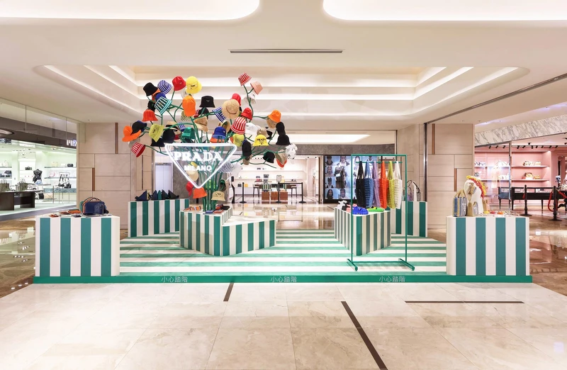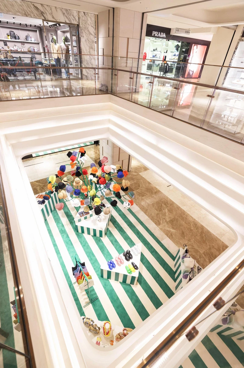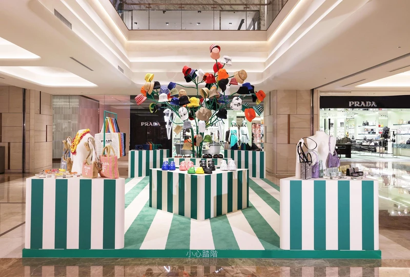 Prada Tropico期間限定店設置於高雄漢神百貨2樓的Prada專賣店前方,限定店以綠色、奶油白的條紋為設計,比擬熱帶森林般的意象,為了呼應Prada Tropico期間限定店的主題,品牌特別挑選將近一百頂帽子點綴,就好像一棵盛開的帽子樹。