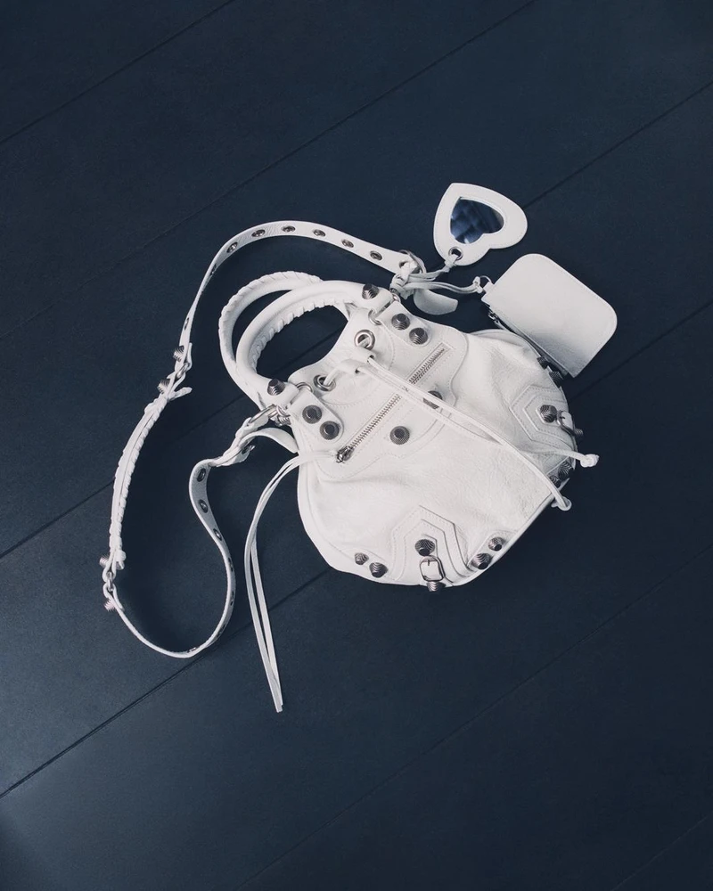 從機車包延伸出來的Le Cagole可頌包,命名相當有趣——Cagole源於法文俚語,意思是善於打扮、妝點自己的時尚達人,因此相比於品牌的其他包款,Le Cagole有著更多皺褶、鉚釘,視覺上看起來更具存在感與造型感。