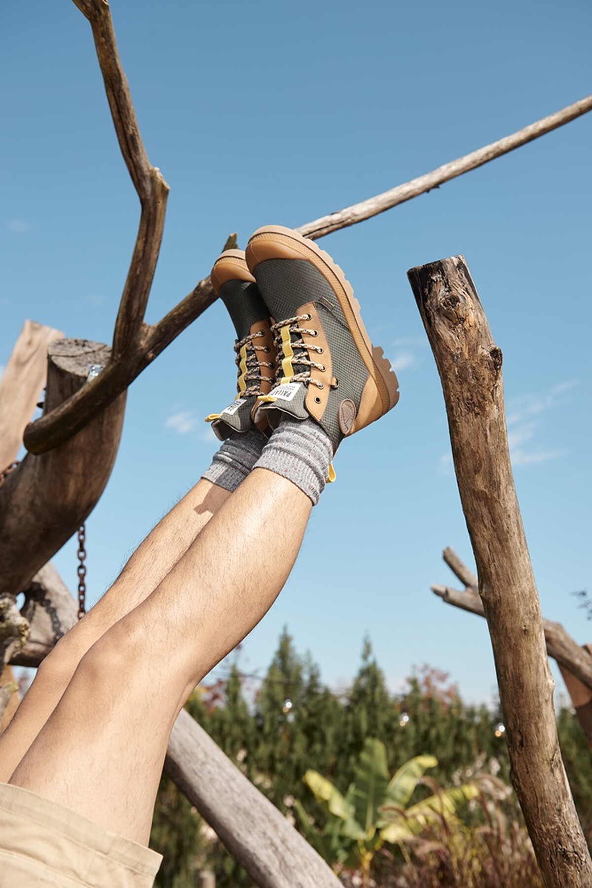 擷取戶外音樂季充滿活力的繽紛色系,結合大自然地景配色,為Palladium橘標防水系列換上更青春、奔放的外觀,靴款本身則承襲機能性特色,包括以WATERPROOF PLUS抗撕裂防水科技纖維拼接WATERPROOF防水塗層麂皮製作的鞋面,加入防水效果的鞋舌,以及搭配輕量進化科技與加強耐磨度的大底。