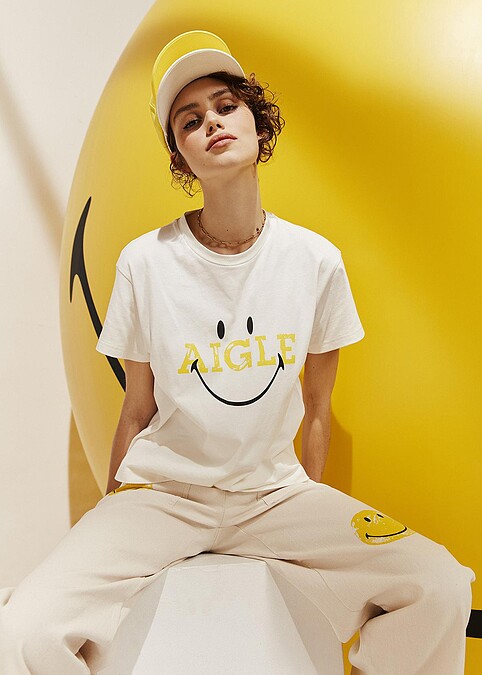 微笑圖案綴以Aigle標誌,推出亮黃色、燕麥白共兩款。