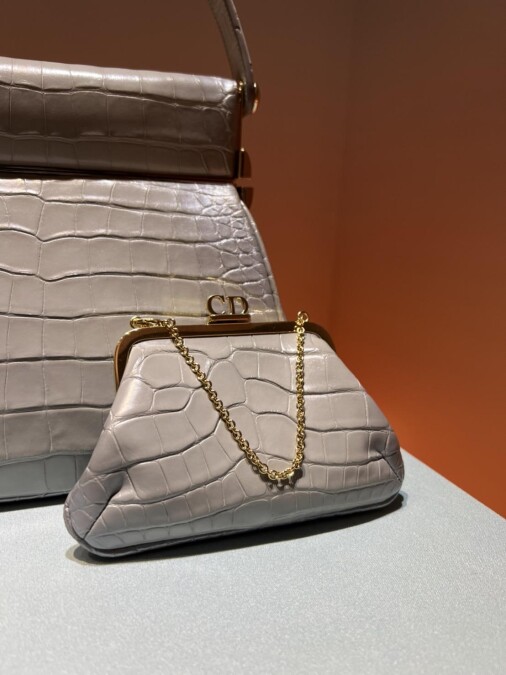只有在Les Salons D’Exception卓越逸品訂製沙龍才能看到的Dior Babe手袋,特地向美國名媛Babe Paley所致敬,手提式的晚宴包,搭配獨特的開合方式,隨包附有一款小口金包,手提包內貼心設計了方便女生們補妝的鏡子,還有放置化妝品的小隔層。