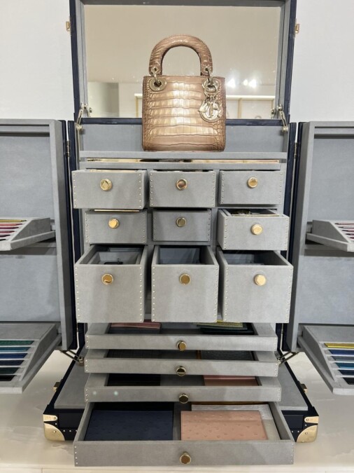 Dior特別在Les Salons D’Exception卓越逸品訂製沙龍打造一處奢華訂製空間,受邀到此處的顧客,可以直接與Dior巴黎總部連線,由負責珍稀皮革訂製的設計總監,親自溝通客製化包款的設計,僅提供20組客人預約。