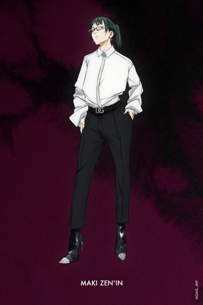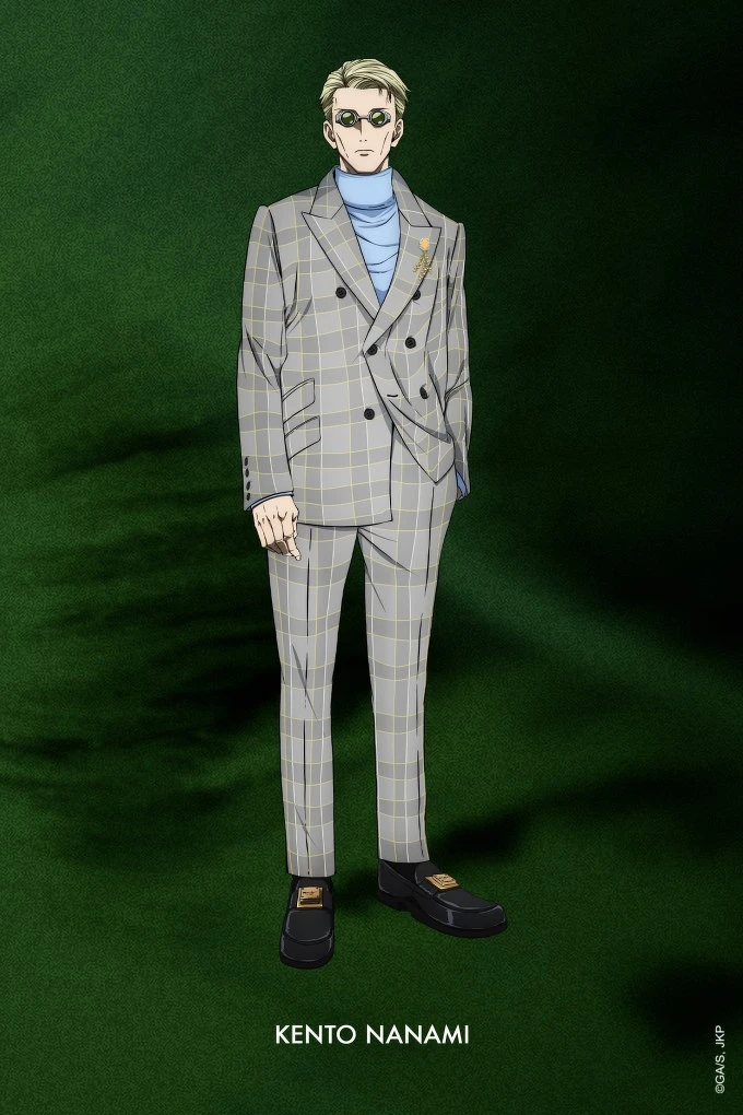而當中禪院真希與七海建人則與其他六人的風格有明顯的不同:七海建人從上班族身份回歸咒術師,平時在漫畫裡便以西裝套裝的打扮登場,改造過後並無太多的差別。