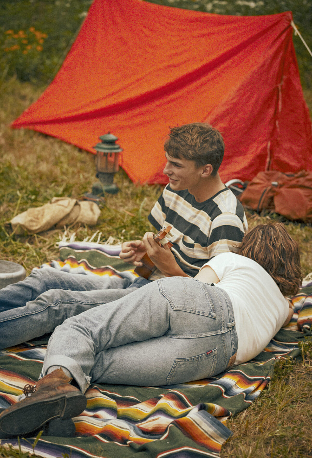 因此在本月上架的春夏古著系列,在耐看又百搭之中又帶點復古休閒韻味——粉彩色調的粗條紋T恤與夾克、喇叭牛仔褲、復古印花套裝⋯⋯皆參考當時大學生的穿搭而來。