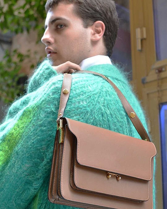 最後則要說到Marni最著名的代表作Trunk,1994年創立、1998年正式開啟包包產品線,直到2014年Consuelo設計出風靡全球的Trunk風琴包,方正的包身卻搭配Marni標誌性的撞色元素,加上獨特的金屬開釦,圈粉楊冪、劉雯…等無數大咖女星,至今仍是Marni最熱賣的包袋。