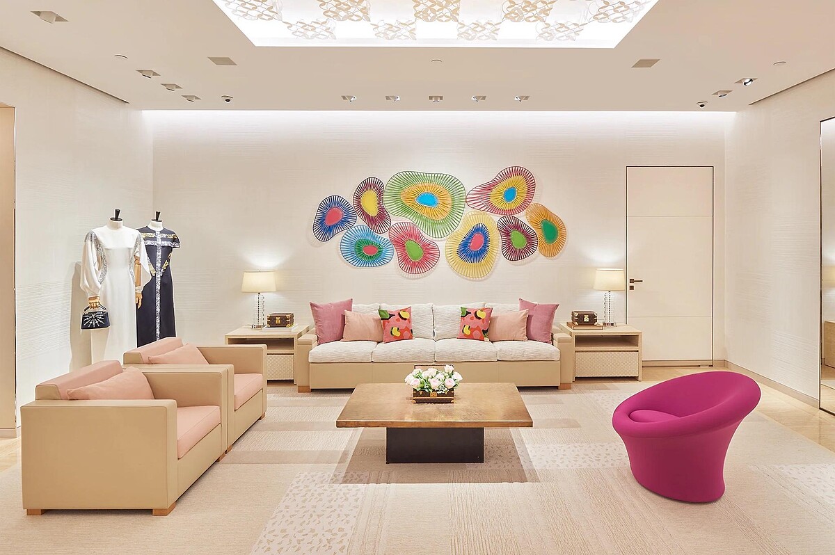 首件為戶外使用而生的家具來自設計師周宸宸之手,從雲南的梯田以及美國Arizona羚羊峽谷的自然景觀獲得靈感,形塑出Signature系列的流線外型,此一系列分為室內款與室外款——室內款採用的是LV以引為傲的奢華皮革拼接上義大利品牌 Paola Lenti 的立體圓點布料;室外款則採用防水帆布製作。