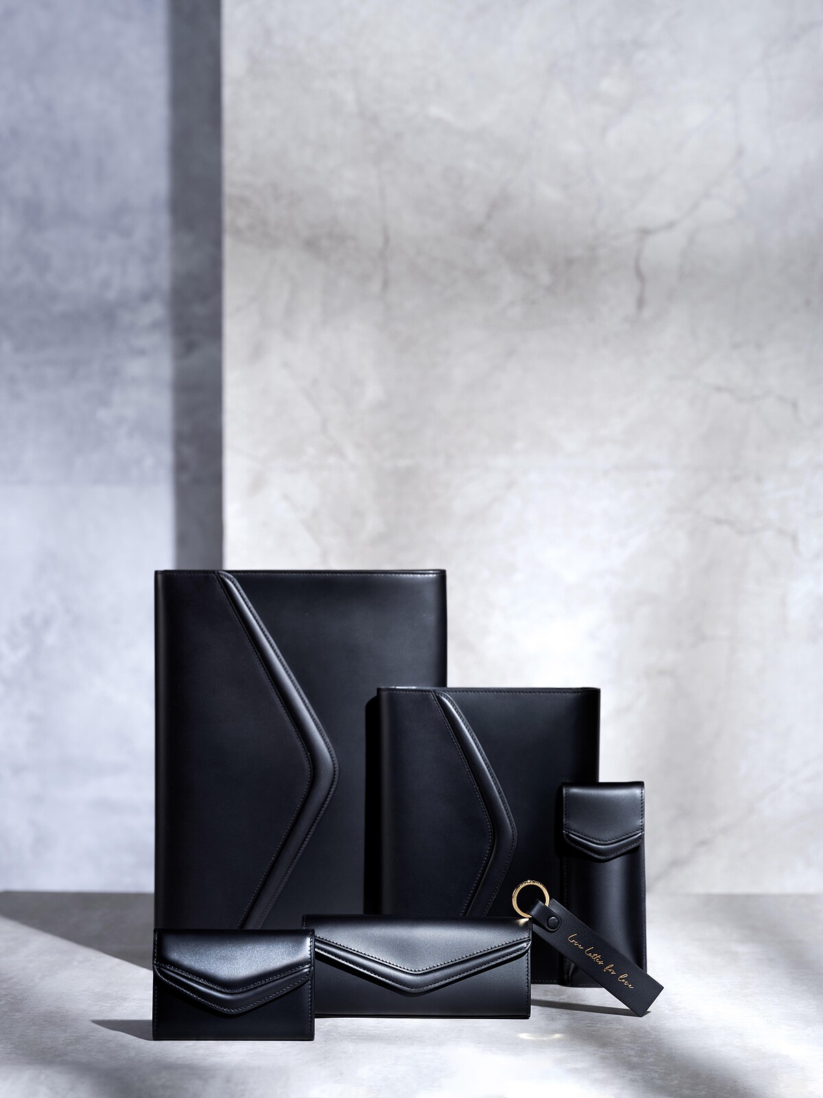 擷取Love Letter系列的信封造型所延伸出的文具禮盒,一共包含6件實用辦公小幫手:文具盒、A5筆記本套、名片夾、鉛筆盒、書籤以及A4文件夾。