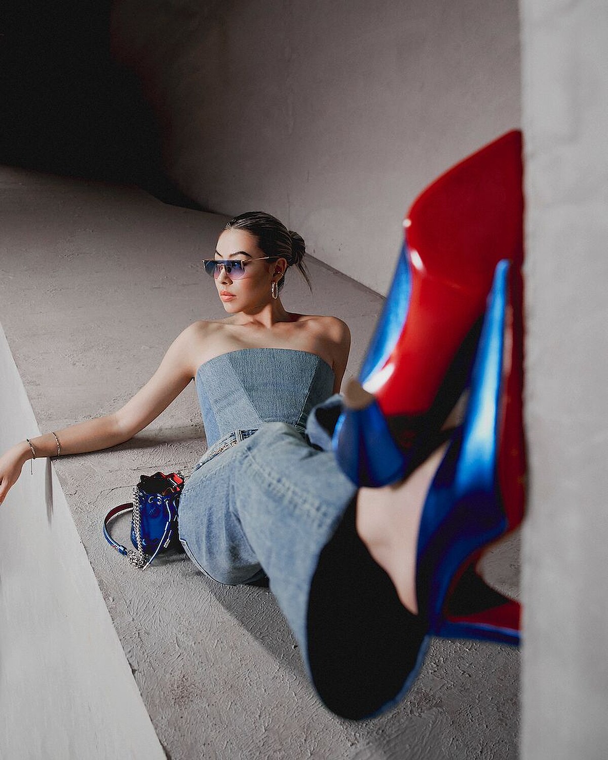 Dizzy Dizzo 蔡詩芸以全身丹寧的風格搭配同色系鞋款,中性風格展現瀟灑的時髦氣息與個性女人味。