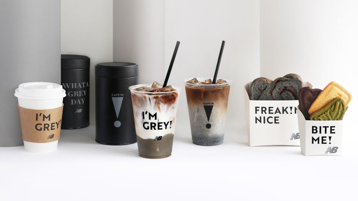 這次New Balance X CAFE!N的WHAT A GREY DAY活動,店中從茶點飲料到包裝都注入冷霧灰的質感巧思,無論是呼應灰色調的芋泥拿鐵冠軍、芝麻拿鐵冠軍及豆漿焙茶奶酥吐司,或是有著NB LOGO與鞋款造型的手做餅乾、冷霧灰的個性口罩…真的是全方位讓人感受到WHAT A GREY DAY的魅力!