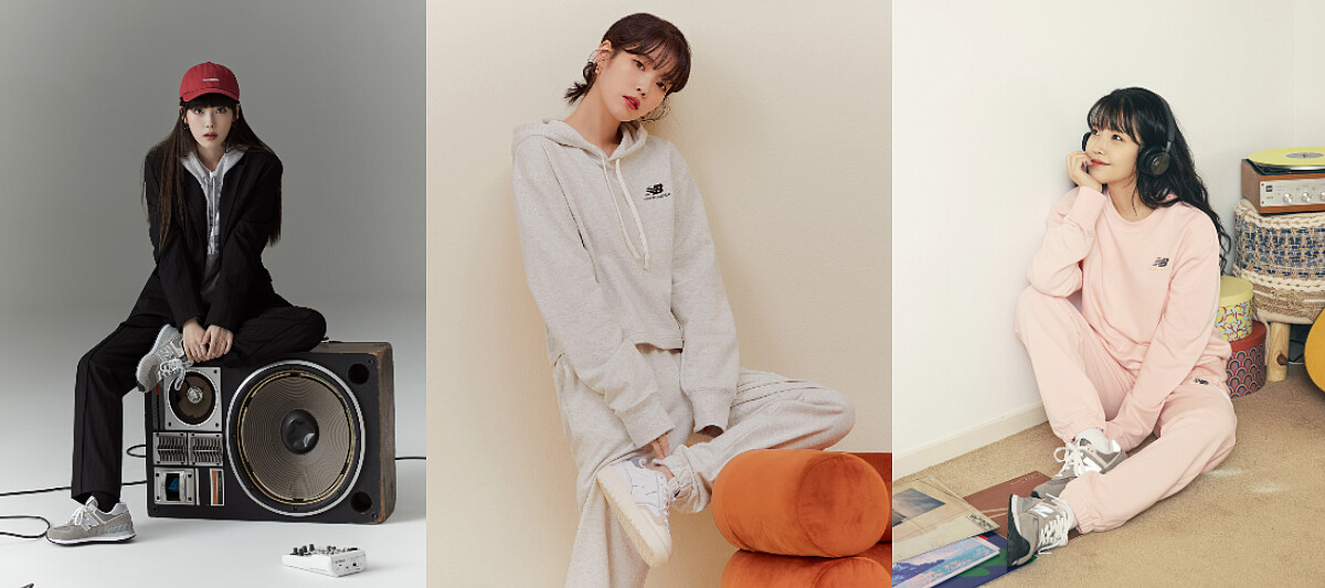深色調性的冷霧灰574鞋款,搭配上時下最夯、同樣也是冷霧灰的連帽上衣X西裝套裝率性風格,讓整體有呼應的對照感,並透過冷霧灰的平衡特點,讓黑系造型保留酷帥卻又不顯沉重,百搭實力輕鬆顯現。而輕快有元氣的成套運動裝束,清新質感淺灰調呈現的是一種比潔白更具態度,又能突顯女孩溫柔隨性的動感樣貌;粉嫩夢幻少女運動裝束最怕就是過膩,IU搭上New Balance冷霧灰鞋款讓甜美中憑添個性主張,完美平衡整體視覺,很適合愛美女生在穿搭上好好學習的範本,穿出不僅時髦還很有風格態度的自我主張。