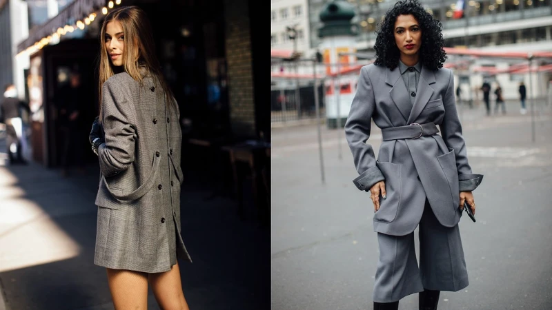 暖色調或冷色調的灰,注入到俐落中性西裝設計單品中,讓女性穿搭呈現一種洋溢著中性英氣的超強存在感。
