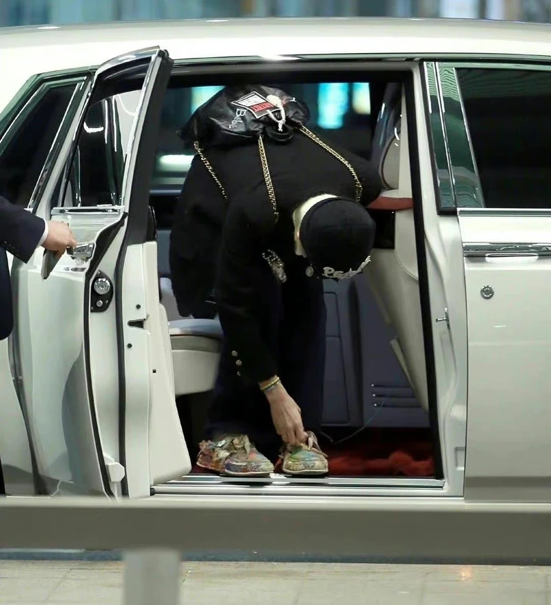 GD穿香奈兒搭愛車勞斯萊斯現身,機關槍式快門聲證明機場穿搭無人可比