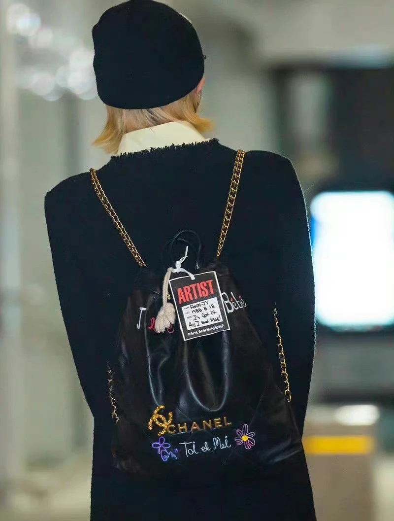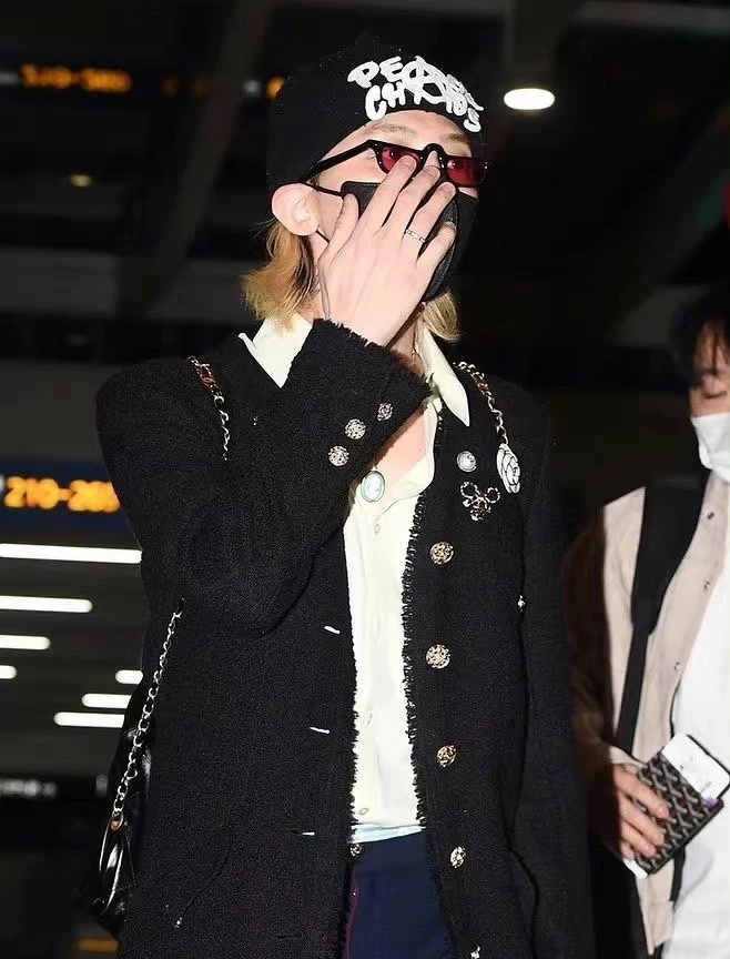 以GD歐巴現今的地位,想邀請他參加活動並非易事,此番公開現身機場又是為誰?那就只有香奈兒有如此大的本事,據悉GD將會出席香奈兒在法國摩納哥蒙地卡羅舉辦的2022/23 Cruise渡假系列大秀,作為香奈兒品牌大使的他,選擇Chanel黑色毛呢外套,就愛跟別人不一樣的GD,在外套上別滿了山茶花、雙C標誌的胸針,最吸睛的應該就屬他身後最新亮相的22 Bag,經典菱格紋設計、皮革穿鍊背帶,GD歐巴還加入個人化刺繡圖案,大容量的包身背著出國正合適。