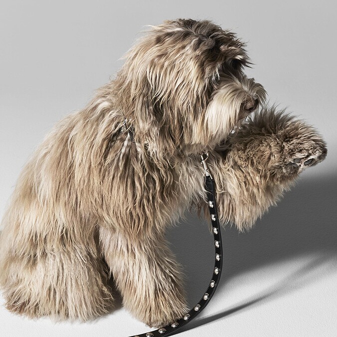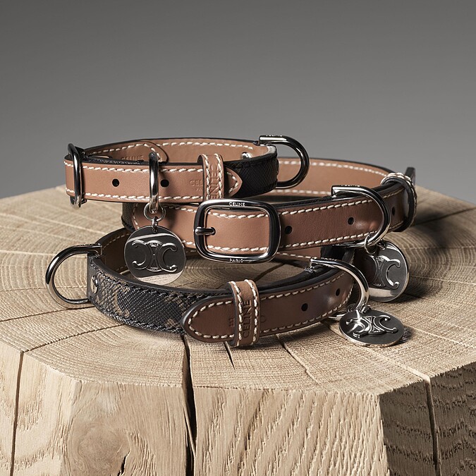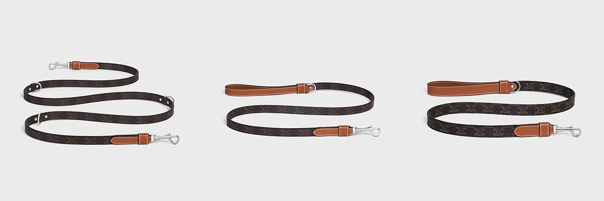 對於CELINE最直觀的聯想,除了深棕色的老花圖樣,還有極簡氣質的焦糖色皮革,將以上兩樣素材製作成狗狗項圈與牽繩,項圈上皆配有一枚Triomphe鎖片;除此之外,如同我們所用的皮帶,項圈附有多個穿孔、可以隨寵物的頸圍調整。項圈一共有4種尺寸、牽繩則有3種樣式。