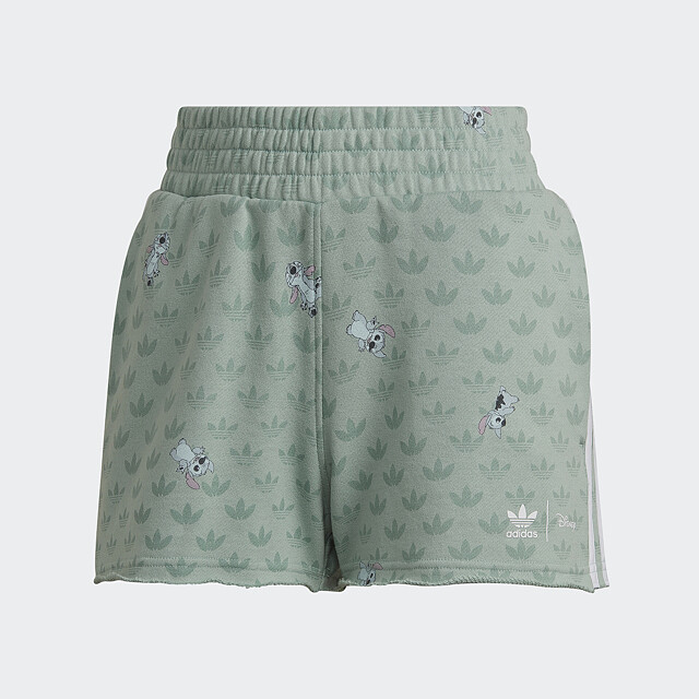 將史迪奇可愛、搞怪、調皮各種樣貌,結合adidas Originals三葉草標誌推出T shirt、短版上衣、開襟外套、襯衫外套以及短褲,首推以adidas Originals滿版三葉草標誌和史迪奇圖案打造的米色、湖水綠成套運動服裝。