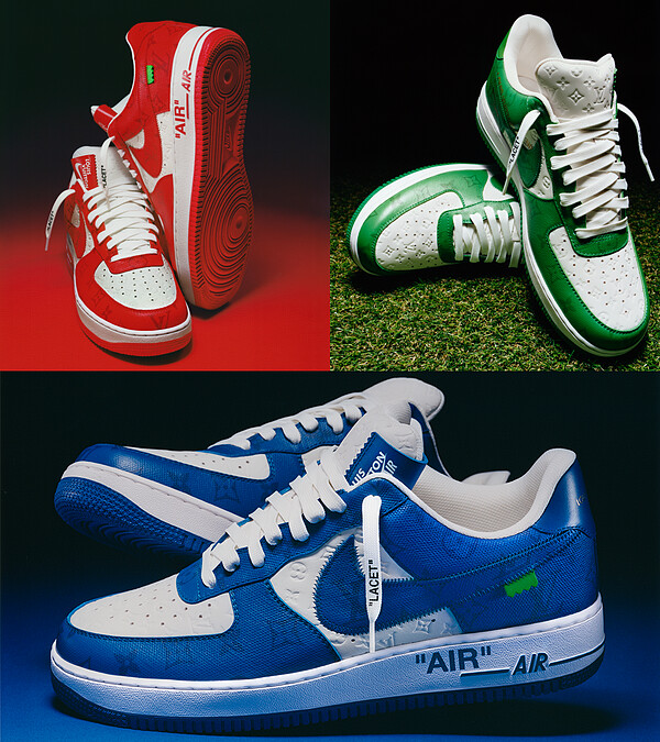 而以撞色設計為特徵的Air Force 1,Louis Vuitton推出紅/藍/綠等顏色,也是向Virgil Abloh先前為品牌設計的彩虹主題致敬。