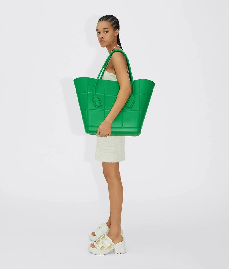 自從環保意識崛起,永續精神、綠色精神不再是口號,各大時尚品牌陸續推出環保相關服飾、手袋和鞋履,貫徹對永續時尚的理念。2022年春夏,以編織工藝享譽時尚圈的Bottega Veneta,推出全新Arco Rubber系列托特包,只不過你要小心,因為一旦不用後,它有可能就會消失不見。