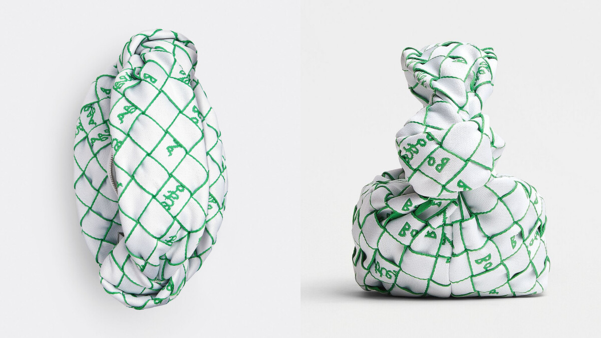 由前任總監Daniel Lee於《Salon 03》推出的鏡射Bottega Veneta刺繡圖樣,甫成為Cassette卡帶包的新衣,迎來品牌官網的新面貌,再把此一設計移植到Double Knot編織手提包上。