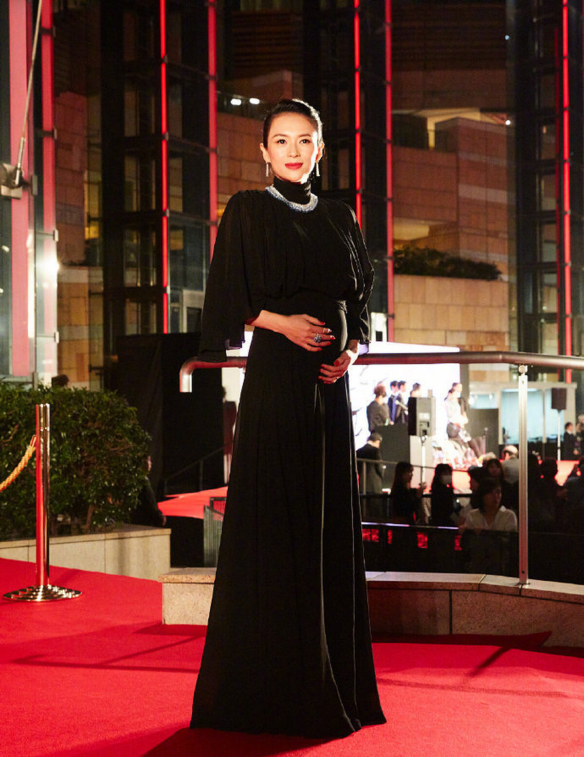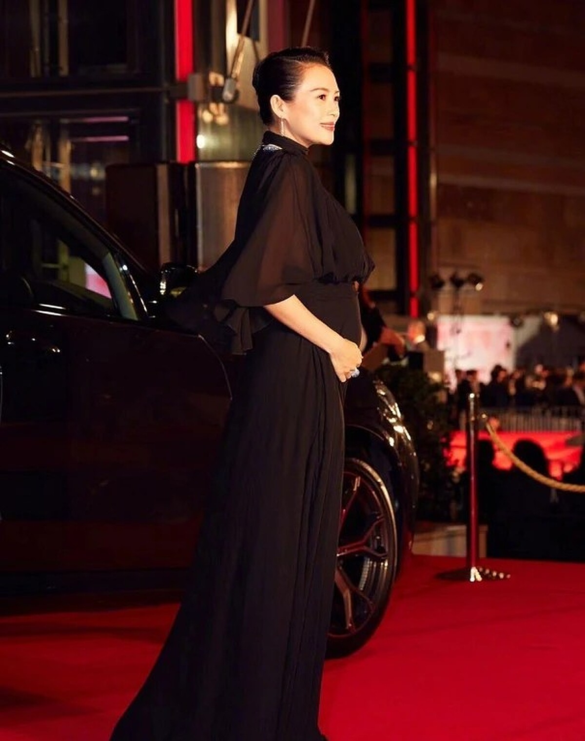 曾受邀擔任電影節評審的章子怡,就穿著黑色長禮服現身紅毯,當時懷有二寶的她,雖然禮服蓋住了肚子,卻仍然可以看見她明顯的孕肚。