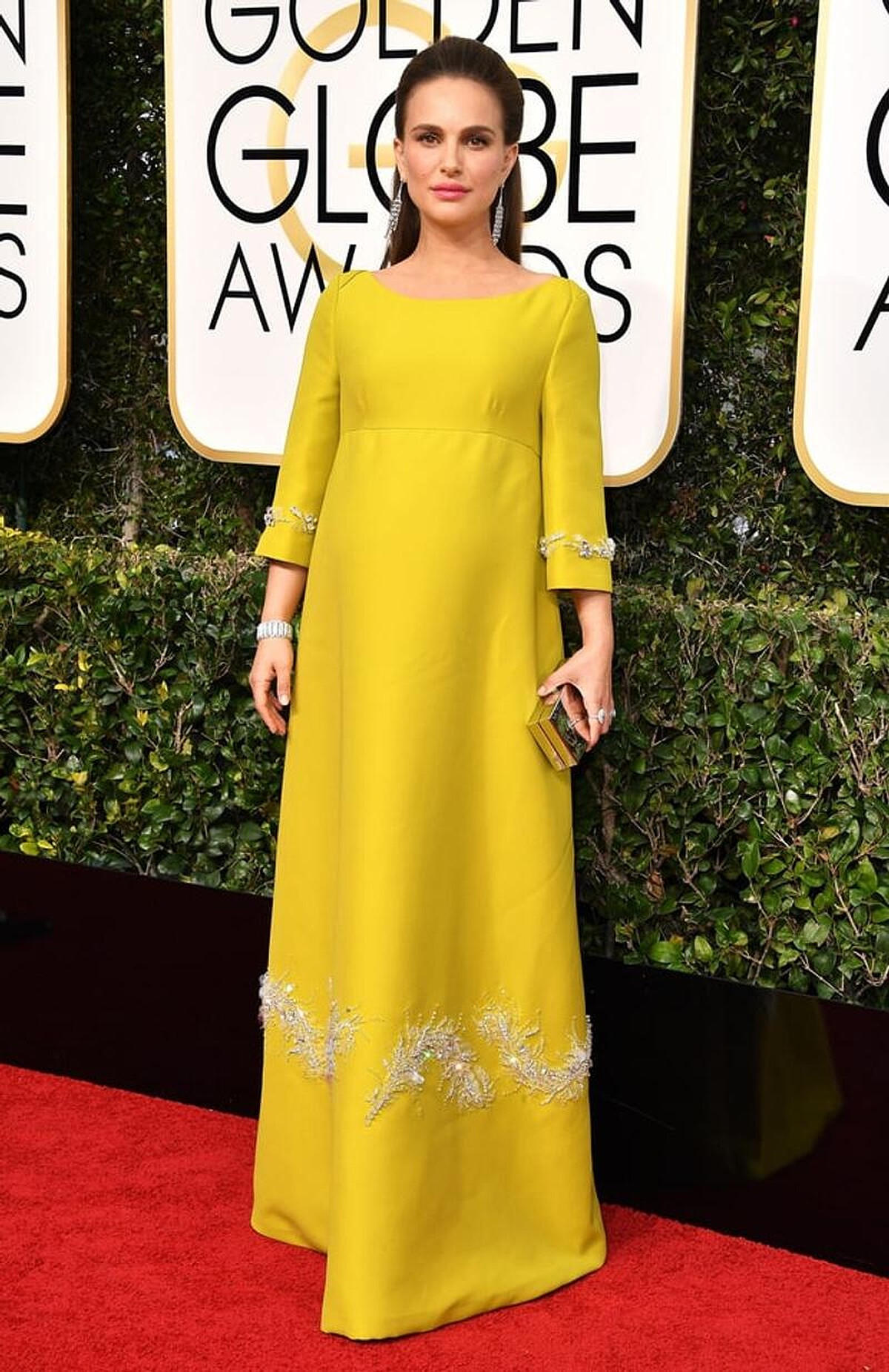 因電影《第一夫人的秘密》入圍金球獎的娜塔莉波曼,穿上Prada亮黃色珠飾刺繡禮服出席;出席威尼斯電影節時,選擇Dior白色單肩長禮服,展現女神般的氣場。