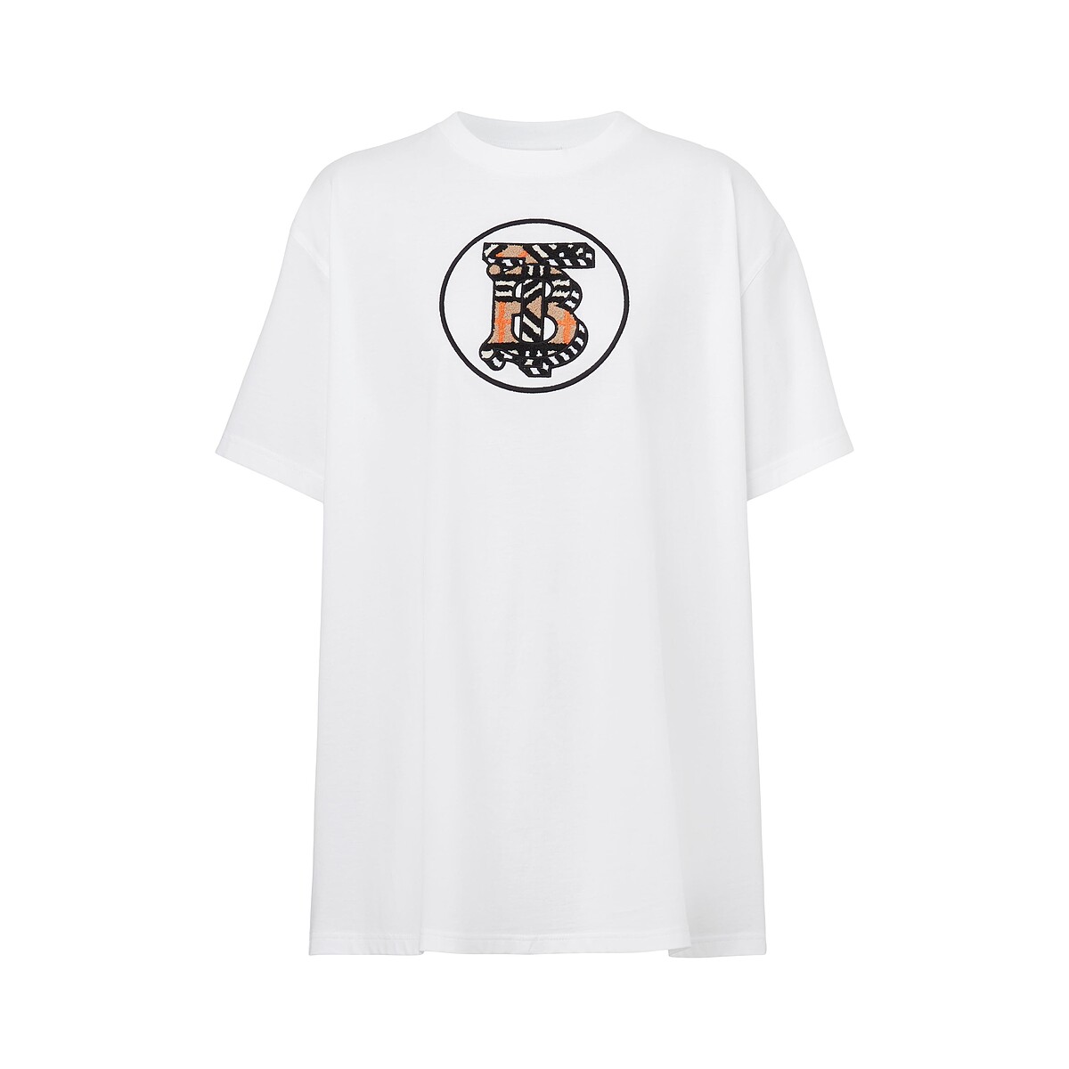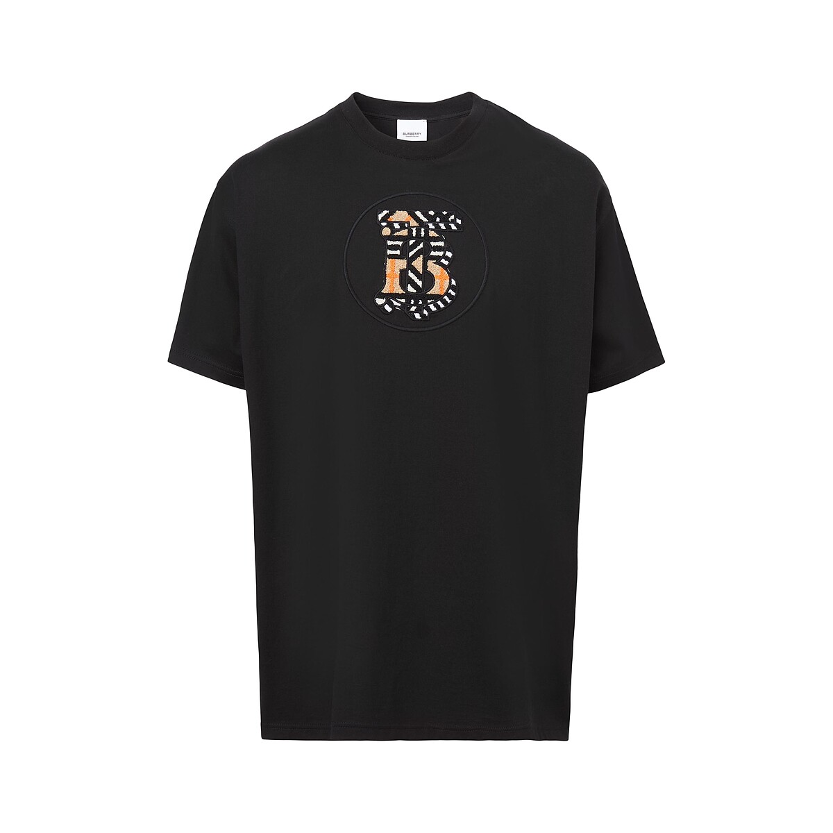 衣櫃裡的logo T永遠不嫌多,中性的寬版剪裁在前胸中央是以TB logo,並以絨毛來詮釋2022春夏印花設計,提供百搭黑白兩色。