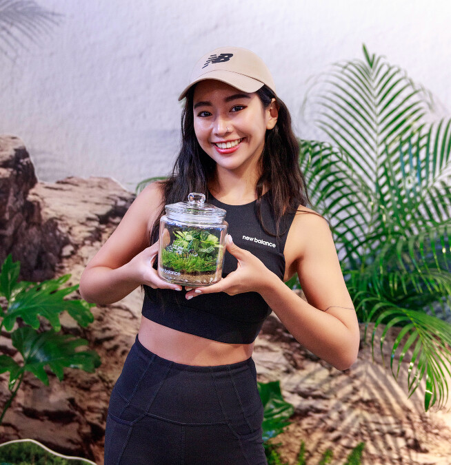 不只是好拍照且可近距離體驗New Balance Hierro V7特色的場佈,New Balance更貼心安排手作生態瓶活動,將赤玉土、火山石、發泡煉石、培養土一層層放入玻璃容器中,在覆蓋上放入苔癬、蕨類、綠植…讓它們在生態瓶中野蠻生長,展現自身只要微水分就能形成微形生態系統的生生不息樣貌。唐葳與謎卡MIKA埋頭細心打造屬於自己的生態瓶,經由一道道觸摸與近距離觀察土壤與植物的過程,在靜下來與慢下來的時間中,深刻感受New Balance Hierro V7系列想傳遞的理念,穿梭在城市與山林之間的同時,也是一種人與自然之間所開啟的療癒儀式感。