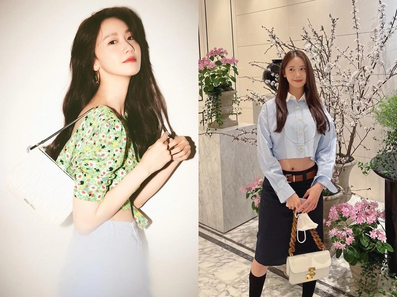 成為Miu Miu女孩的少女時代成員允兒,穿上Miu Miu最新一季的短版上衣和低腰牛仔褲,大方露出她纖細的腰身。