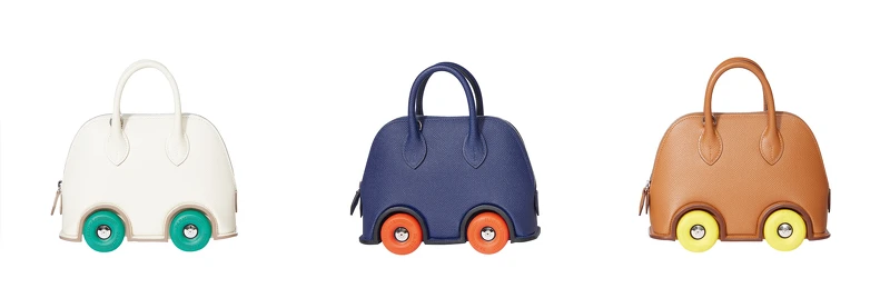 Bolide當時是為了方便收入後車廂而誕生的包款,呼樣如此的故事背景,Bolide On Wheels加裝上了滑板滾輪,並仔細仿造汽車的擋泥板外觀(這相當考驗工匠的縫製技術),賦予Bolide童心玩味的一面。輪胎可實際滑動,拎著Bolide On Wheels出門還請稍加留意,別讓包包一個不小心悄悄從你身邊溜走。