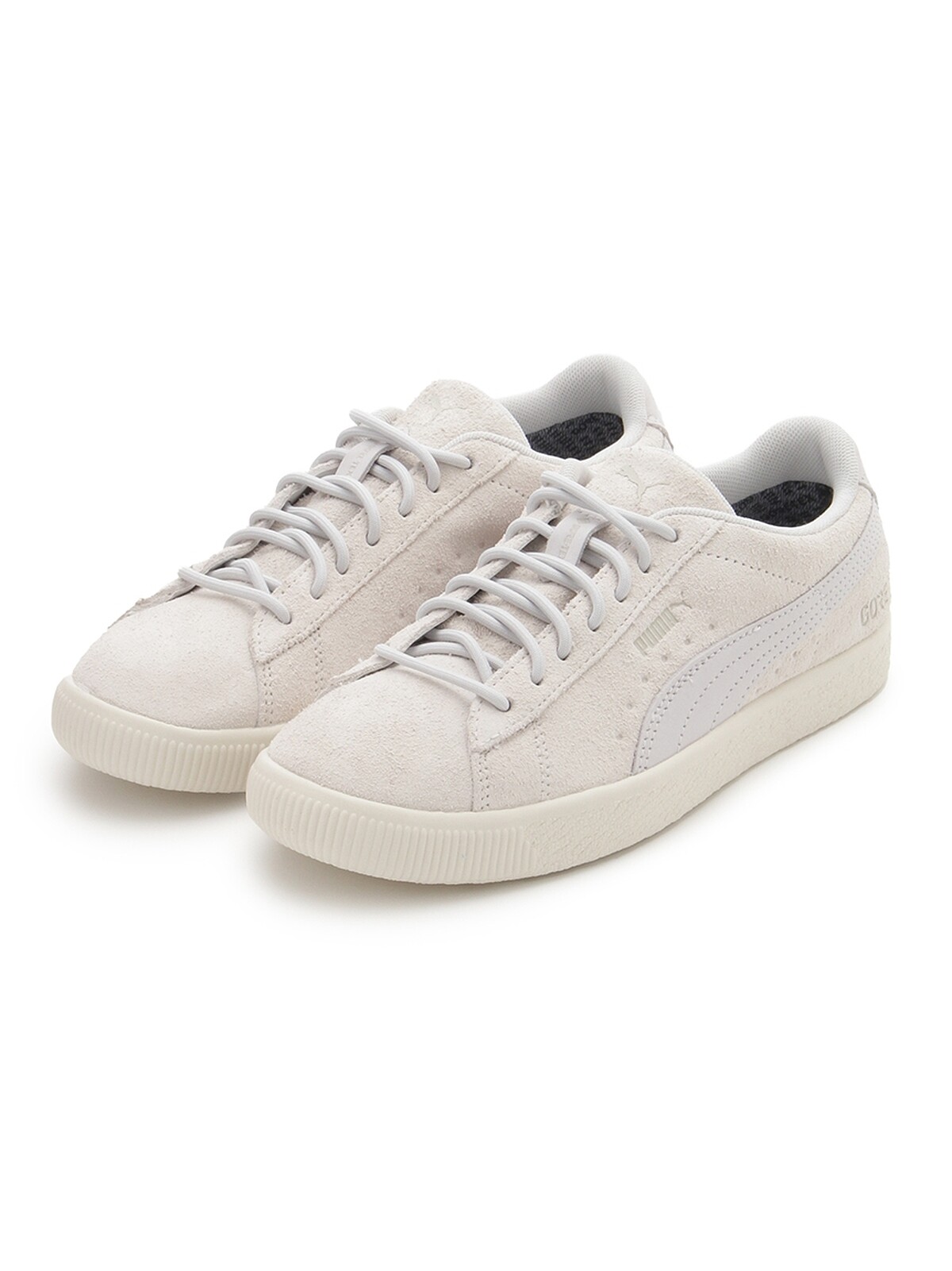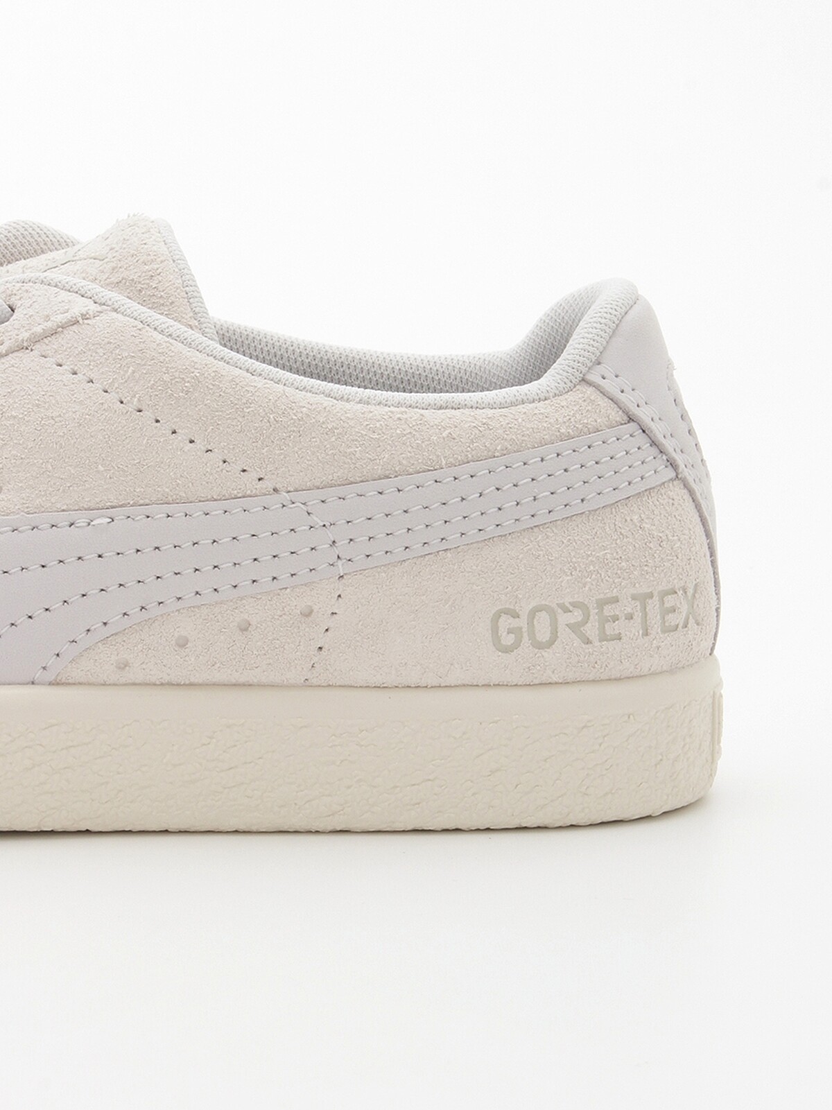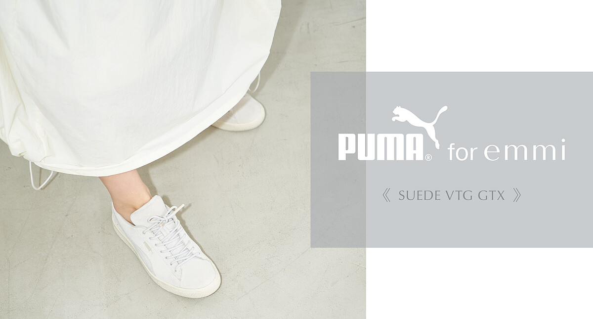 以Puma的Suede VTG板鞋作為設計藍圖,此次聯名的小白鞋,白中帶有一點灰色調,具日本女孩獨有的清新氣質。乍看麂皮的材質,怎麼會是雨天可穿出門的小白鞋呢?