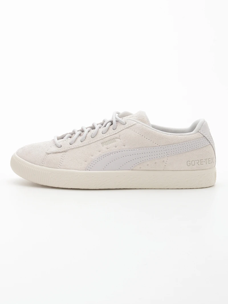 以Puma的Suede VTG板鞋作為設計藍圖,此次聯名的小白鞋,白中帶有一點灰色調,具日本女孩獨有的清新氣質。乍看麂皮的材質,怎麼會是雨天可穿出門的小白鞋呢?