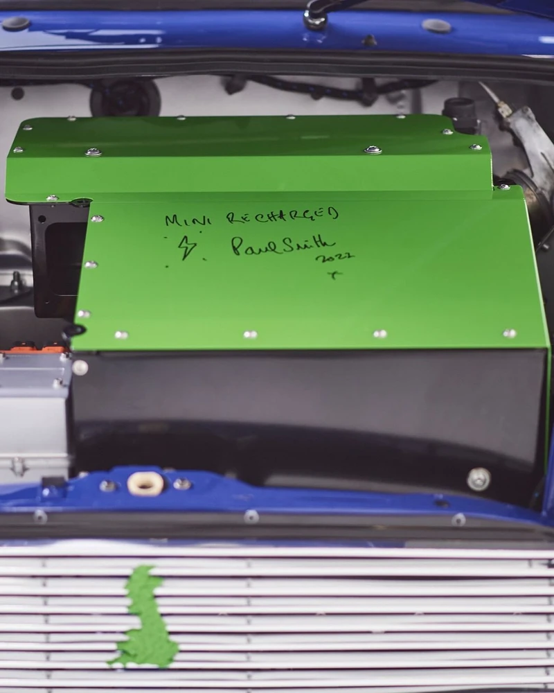 1998 Mini Paul Smith Edition首次在米蘭的Salone Del Mobile汽車展亮相,小巧又復古的外型歷久彌新,快轉到2022的今日,尤其可愛!忠於對復古車款的尊重,Paul Smith僅改變烤漆顏色,將設計彩蛋藏於各角落,對此,Paul Smith解釋:「就像你搬進你阿姨的舊公寓,你並不會大動作改變裝潢,而是用軟裝營造出摩登感。」而2022 Paul Smith Mini Recharged的烤漆,則是出自於Paul Smith最愛的襯衫顏色。