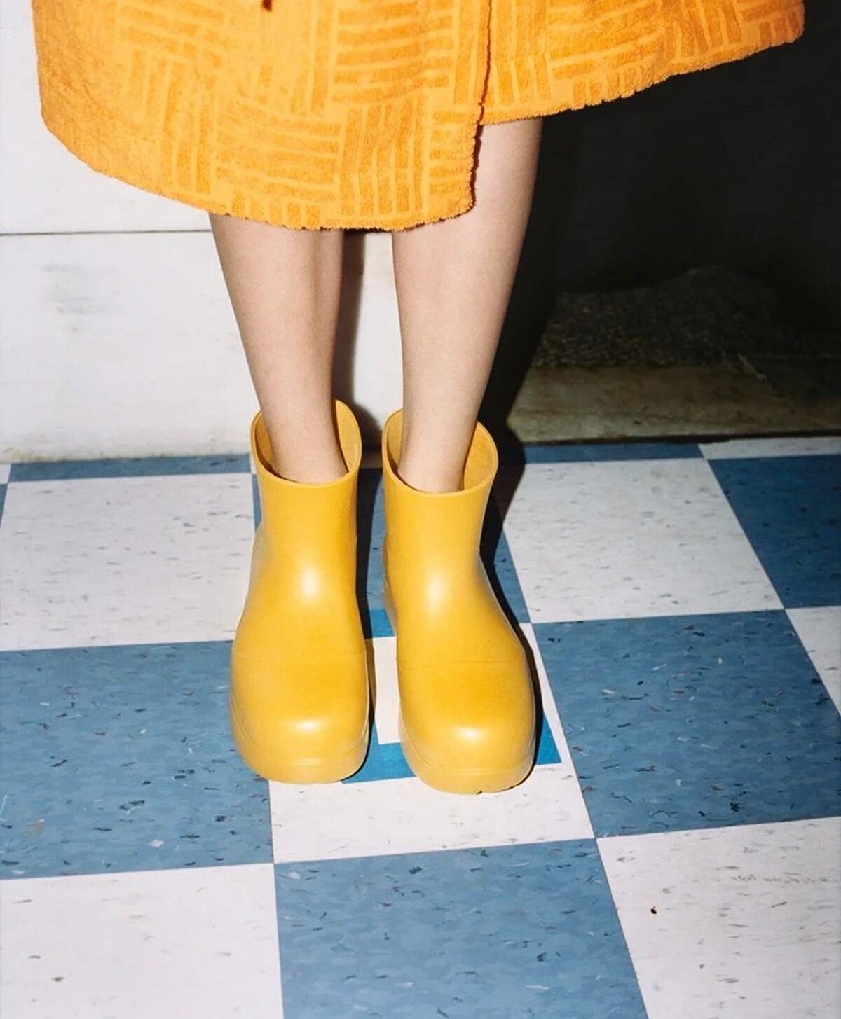 為了貫徹永續時尚的環保精神,BV採用可回收分解的橡膠材質製作,內襯則是透氣棉料,搭配一體成形的靴筒設計,呈現前所未見的獨特時髦外觀,除了防水特性外,Puddle厚底雨靴擁有6公分的增高設計,具有修飾小腿的視覺效果,同時拉長腿部比例,讓你化身長腿超模。