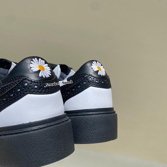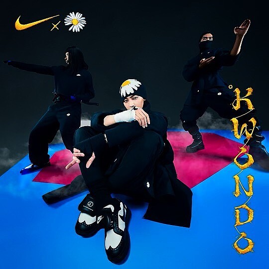 GD X Nike Kwondo 1聯名系列將鞋面改以黑、白皮革拼接,保留牛津鞋的雕花細節、可拆式鞋舌和鞋後跟處Peaceminusone最具代表性的小雛菊圖案,並且權志龍搶先穿上這雙新鞋,並在社群平台發佈照片。