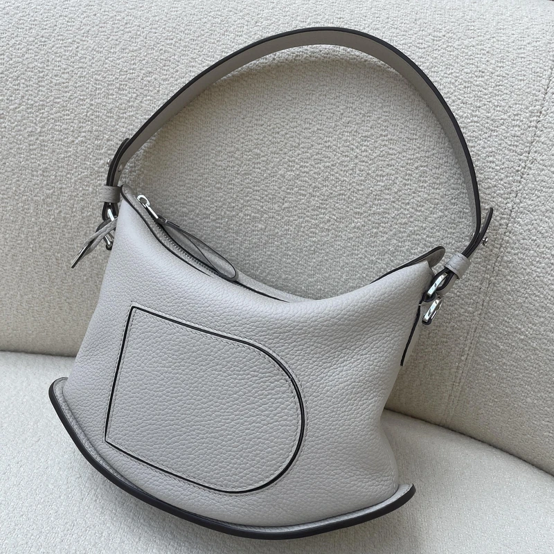 從Pin水桶包(註:Pin發音為「胖」)延伸而來的Pin Swing,包型向外延展,並在包口處多了拉鍊的設計。包包正面的D字切割,不只是裝飾,而是一個隱藏的小口袋,方便插入悠遊卡或是名片等扁狀小物。