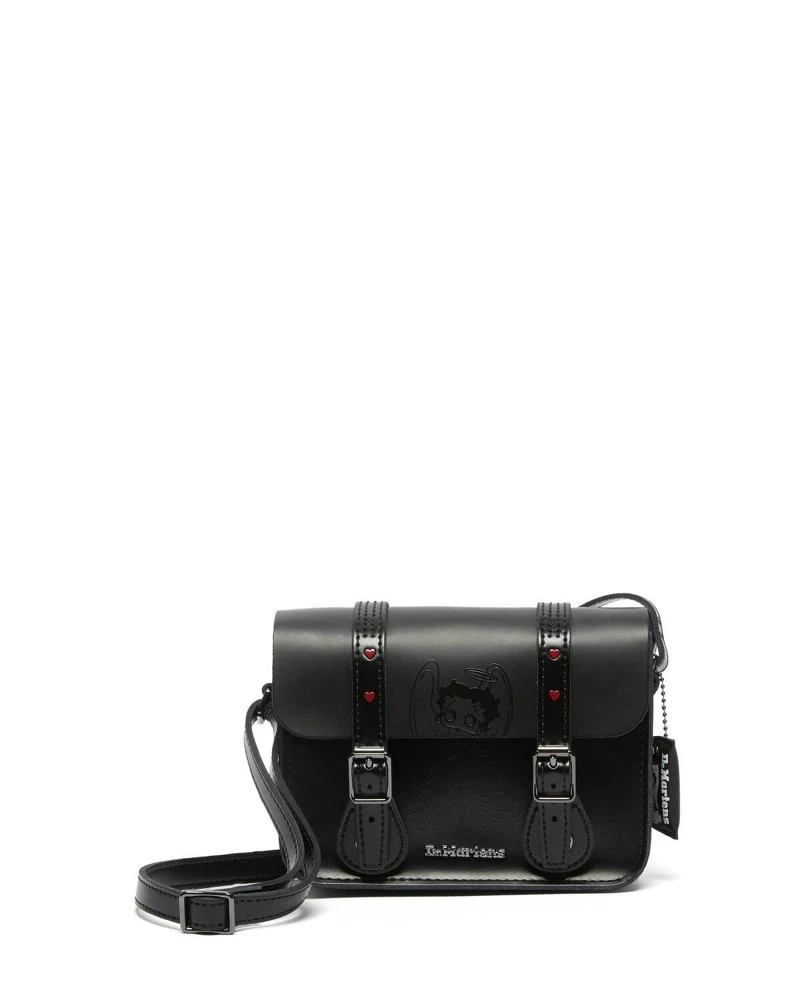 除了上述三款鞋,本次聯名還有一款包包。英倫風格的郵差包輪廓,霧面皮質印有天使貝蒂圖樣,並在包包的扣帶上綴以紅色小愛心。