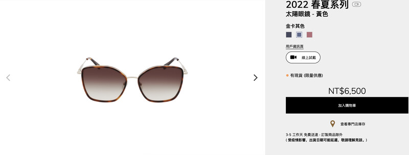 進入太陽眼鏡的選購頁面,商品底下標有?符號即有虛擬試戴的功能。Longchamp新推出的墨鏡試戴功能相當完整,不只是正面墨鏡在臉上的模樣,轉過頭見到鏡架也是非常忠實地呈現。