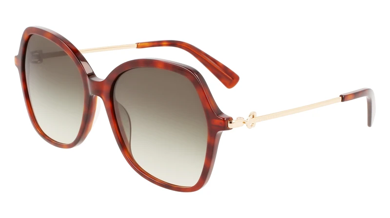 以玳瑁紋為主要設計,Longchamp推出不同色系組合的玳瑁紋,有金屬細框、樹脂粗框等不同鏡框選擇。